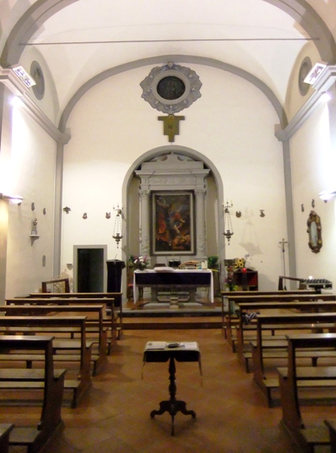 In the church there are three stone altars where you can admire the elegant paintings: in the main altar there is a copy of St. Michael painted by Guido Reni painted by Improved Montone in 1904, in the right there is the painting of the Madonna of the Rosary made by an unknown author (XVII), in the altar on the left there is a painting of St. Joseph built by Nazzareno Gironi of Gubbio 1919. In the small choir preserves a painting of St. Michael, already exists in the old church above the altar.