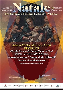 Atteso dalla comunità pistrinese l'appuntamento del 22 dicembre con la Corale Abbatini, dove tanti sono gli elementi facenti parte e che riscuotono successo da tempo per la loro capacità artistica ed espressiva nel canto. La loro unicità è già chiave di svolta nel garantirsi presenze importanti e nuove nella location scelta per questa data, cioè la chiesa centrale di Pistrino, detta Il piccolo Tempio del Sacro Cuore di Gesù .