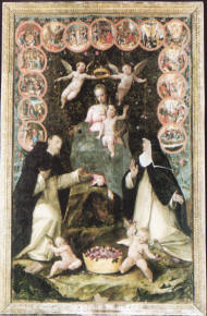 Further embellishments and restoration works were carried out from the late sixteenth century onwards: in 1589 the confraternity of Santa Maria del Rosario (St. Mary of Rosary) was established, as attested by a plaque on the left wall of the church recalling a legacy (1621), which probably favored the construction of the altar bearing the same name, while on the opposite side another altar of painted wood and silver-leaf hosted a painting representing a holy hermit. The three paintings have been the subject of a restoration ordered by the B.A.P.P.S.A.E. Superintendent of Perugia (Supervision of works by Giuditta Rossi and Mariangela Brucato) and carried out by the company COO.BE.C of Spoleto. They are now temporarily on view in the modern church of Santa Maria delle Corti, in Lisciano Niccone; the other parts constituting the wooden altars are stored in a specific room.