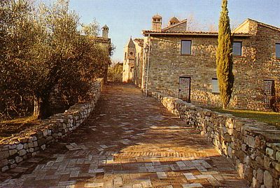 (Height: 424 a.s.l. - Distance: 6 Km from Umbertide; 13 Km from Lisciano Niccone). We have had historical mentions of both the ancient castle and the medieval village since 1210. In the ancient maps this place is usually referred to as "Montemixano" or "Monte Mezzano". This very important area was put under the rule of Città di Castello and Perugia. In the 50's Montemigiano underwent a slow phase of decay owing to the constant depopulation. Fortunately the village has been recently restored and today it is possible to admire its castle, its ancient church and its medieval houses. Borgo di Montemigiano is settled on the top of a hill, on the left bank of the torrent Niccone, along the way wich once led to Civitella - S. Anna and Comunaglia. The place can be easily reached from Niccone.