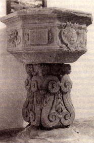Tra le cose che ci rimangono intatte dell'antica Pieve è sicuramente il fonte battesimale, ben conservato e fortunatamente trasportato nella Chiesa della Madonna della Croce. Il famoso fonte battesimale era di pietra, bello e con il relativo basamento, come lo descriveva il cancelliere vescovile nell'anno 1583. Peraltro nonostante i ripetuti richiami, non fu mai ornato da un quadro di S.Giovanni Battista, come richiesto dalla liturgia. E nella visita del 1604 si conferma che il fonte battesimale è "molto bello". Simili espressioni si usano in altre visite, mettendo in evidenza il piedistallo. Don Bruno Frescucci nè da una descrizione completa:"Il fonte battesimale è costituito da due pezzi: sulla bellissima parte inferiore sono scolpite quattro sirene; la parte superiore è decorata con rosoni , testa d'angelo, stemma e le iscrizioni:"sine me frusta" (senza di me non potete salvarvi) "1509" e "Dominus Joannes"(quasi sicuramente il pievano dell'epoca).