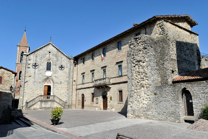Di fronte a Palazzo Fiorucci si erge il Palazzo COMUNALE sul portale del quale si può ammirare un altro stemma dei Fiorucci, proveniente dalla chiesetta di Colle Antico ed inseritovi circa cento anni fa. Questo Palazzo è stato edificato, sopra una parte del mastio della fortificazione longobarda, tra il 1498 e il 1502, su commissione di Mons. Giulio Vitelli, come sede di rappresentanza dell' Arcipretura pietralunghese. Successivamente, dal secolo XVII°, venne utilizzato dal Sacro Ordine dei Cavalieri di Malta e fino al 1888, quando divenne sede del MUNICIPIO di Pietralunga. All'interno, nelle sale più importanti, sono conservati alcuni camini sui quali è scolpito lo stemma della famigli Vitelli. I Vitelli furono storicamente la famiglia più importante di Città di Castello. Assunsero la Signoria della città nel XV e XVI secolo e la abbellirono con numerosi edifici, il loro dominio arrivava fino al nostro comune.