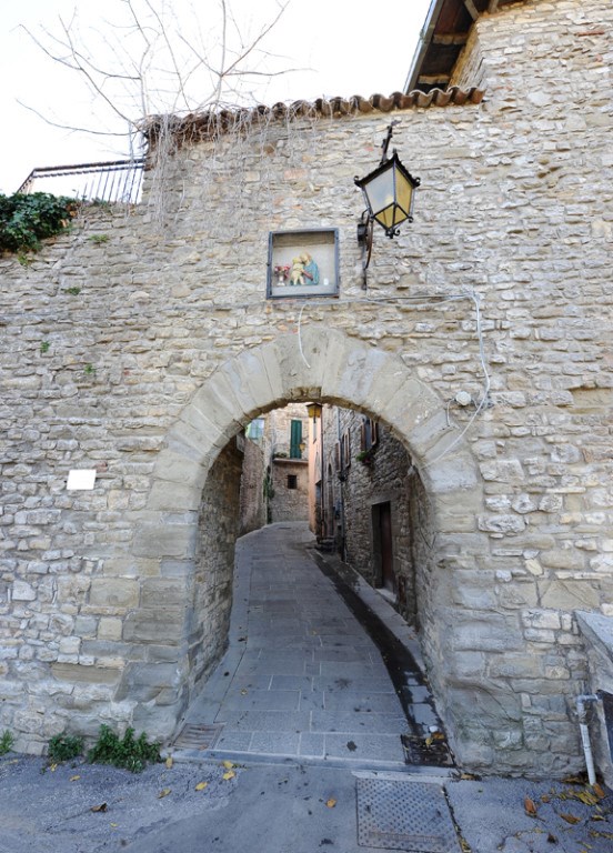 Girando a destra e fatti alcuni passi in avanti si scorge Porta del Cassino, così chiamata perchè, fungendo anche da posto di guardia, nei tempi passati vi era collocata la guardiola o cassino, dove i soldati a turno sorvegliavano l'accesso alla fortezza. É l'unica rimasta, ben conservata, delle tre porte d'ingresso a Pietralunga. Uscendo dalla porta, sulla parete a destra sono tuttora visibili le feritoie di difesa e di controllo, mentre su quella sinistra, due lapidi, con la seguente iscrizione: