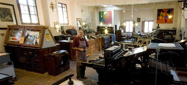 The rooms occupied by the print shop overlook St. Paul’s Church, once a convent and a prison later on. Founded in 1799, it is one of the oldest and still active print shops in Italy.