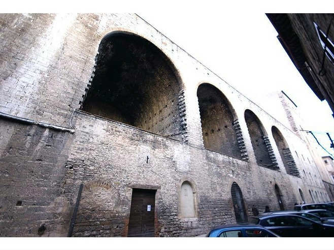 Audioguida (12) La grande piazza pensile, sorretta da quattro grandi arcate, con i due palazzi pubblici era il “cuore” del governo cittadino. E’ tra le più maestose e ardite realizzazioni urbanistiche medievali, ritenuta tra le più grandi piazze pensili esistenti. Deliberati nel 1321 dai magistrati, i lavori sono iniziati tra il 1332 e il 1336 e sono terminati nel 1483, ad oggi è teatro incomparabile delle più belle tradizioni dell’autentico folclore italiano.