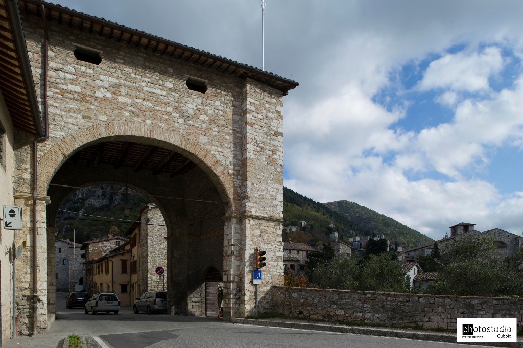 E’ una delle sette porte della cinta muraria medievale: così chiamata perchè da qui inizia via Tifernate, la strada che conduce a città di Castello. In un documento del 1337 viene anche detta Porta del Borgo, una delle cinque porte del quartiere di San Martino, quando la città ne aveva tredici. Era dotata di un ponte levatoio perché protetta da un fossato; all’ingresso sulla destra è ancora visibile il locale del gabelliere, ora trasformato in un piccolo laboratorio di pellami. Nel 1259 gli eugubini, penalizzati da un giudice di tifernate in un arbitrato con Perugia, fanno porre una lapide marmorea su questa porta con la scritta: A FIDE CASTELLANA LIBERA NOS DOMINE. La litania ripetuta anche nelle preghiere in chiesa, fu tolta dal Vescovo Mariano Savelli, nel 1561, perché considerata indecente.
