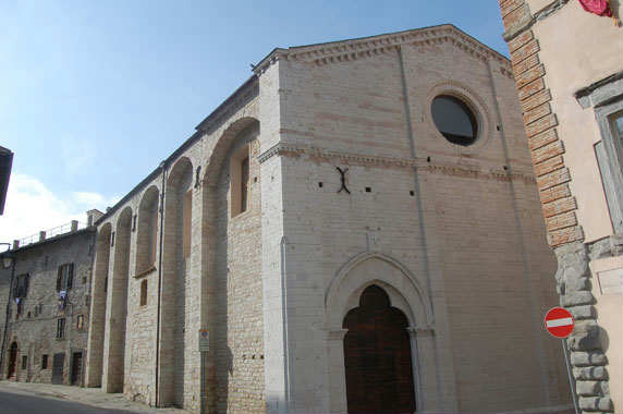 Audioguida (48): Chiesa di S. Maria Nuova Audioguida (481): interno Nelle immediate vicinanze, in Via Ottaviano Nelli, la Chiesa, edificata nella seconda metà del XIII secolo, si presenta ancora oggi con la sua facciata originale, ornata da un elegante rosone e un fine portale ogivale trilobo. Di particolare importanza la Madonna del Belvedere (1413), capolavoro del più celebre pittore eugubino Ottaviano Nelli che, grazie alla devozione degli eugubini, fu l’unica opera pittorica ad essere risparmiata dall’intervento degli iconoclasti del ‘700. E' uno degli esempi più raffinati del gusto gotico internazionale della nostra regione. Interessanti sono pure gli altri affreschi, specie quelli della controfacciata. Tra essi spicca un S. Michele Arcangelo attribuito ai fratelli Salimbeni da San Severino. Il S. Antonio Abate sulla parete sin. è invece attribuito al pittore trecentesco Mello da Gubbio.