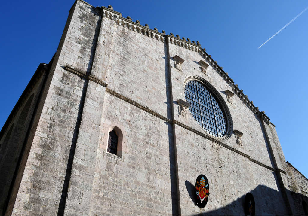 Audioguida (34): Duomo Audioguida (32): Voltone e Giardini pensili La Cattedrale, dedicata ai Santi Mariano e Giacomo, fu edificata ai piedi del Monte Ingino su una chiesa romanica, di cui si possono notare i resti sul lato destro della facciata, risale ai sec XIII e XIV. Il portale, a sesto acuto, è sovrastato da un finestrone circolare ornato da un elegante fascia a fogliame ed attorniato dai simboli degli Evangelisti e dall’Agnello mistico. L’interno, in stile prevalentemente gotico, ha un’unica navata a croce latina sorretta da dieci grandi arconi ogivali trasversi. La chiesa è ricca di dipinti dovuti ad artisti eugubini del '500 (i Nucci, il Basili) ma anche di artisti forestieri (Sinibaldi Ibi, Giuliano Presutti, Dono Doni). Molto significativa è la cappella barocca che si apre nel mezzo della parete destra: contiene affreschi dell’Allegrini e una tela (la Nascita della Vergine) del Gherardi.