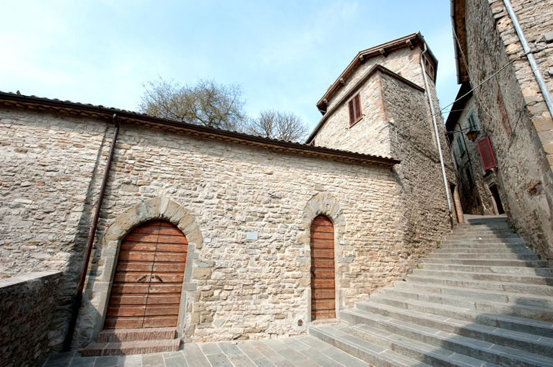 In the small square of the Carmine there was once the namesake Monastery with the “ spitale degli infermi” (the hospital of the sick) and the church. We continue going down the second part of the stairs and reach Via dell’Ospedale. If we look on the right, at the end of the stairs , we will notice the place where the second gate of Pietralunga was; it was called “ Porta Carraia” because the “carri” (carts) carrying commercial and artisanal merchandise used to enter the town by this gate.