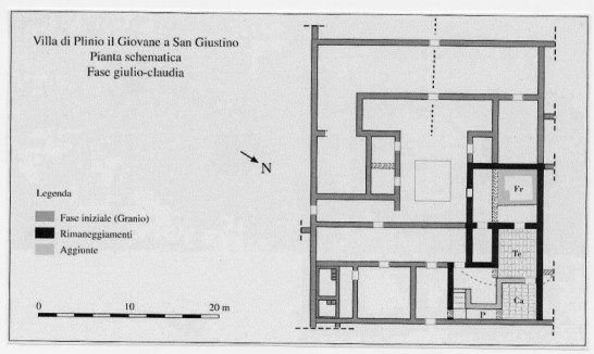Nell’area esplorata emergono per lo più resti di fondamenta di muri in ciottoli di fiume. I lavori agricoli, più o meno recenti, hanno quasi completamente distrutto quei resti archeologici che fecero identificare nel campo di Santa Fiora il luogo della villa di Plinio.