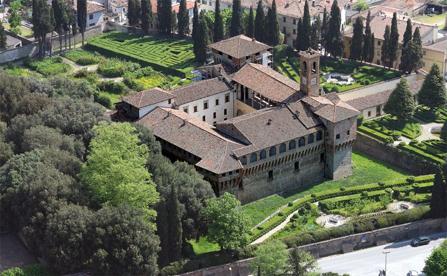 Il mirabile giardino del Castello Bufalini è incorniciato dal paesaggio urbano del centro storico della città valtiberina di San Giustino, al confine con l'Appennino settentrionale in Umbria.